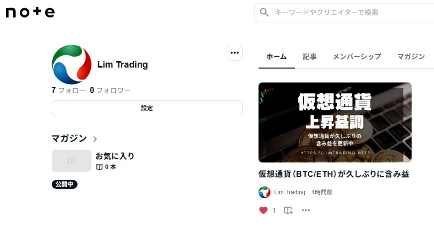 トレードの結果はnoteで更新します 2026-04-19 最終更新日時 : 2026-04-19 Lim FXトレードの結果や仮想通貨の積み立てに関しての発信はnoteで行います。ぜひご覧ください。 ■note(ノート) FacebookXBlueskyHatenaCopy